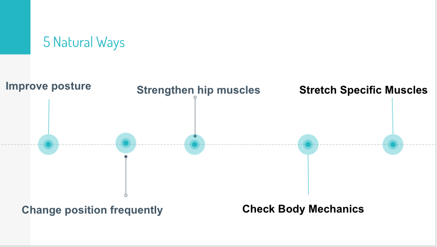 Improve posture: poor posture is one of the long-term causes of Sciatic pain. Ensure use of a lumbar support if you sit for prolonged periods of time at home or work. Avoid habitual sitting on soft couches and recliners.